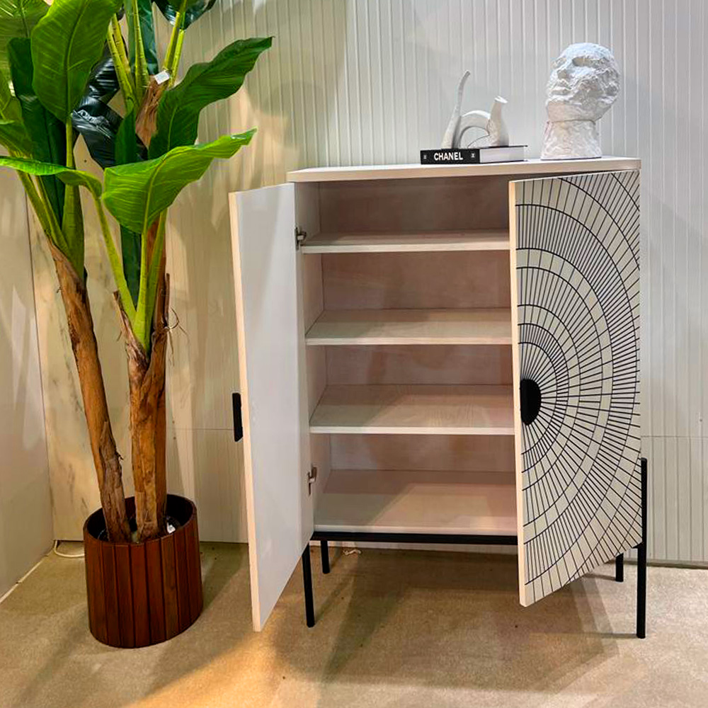 Port chaussure 1 m sur 130 cm en bois et socle en métal