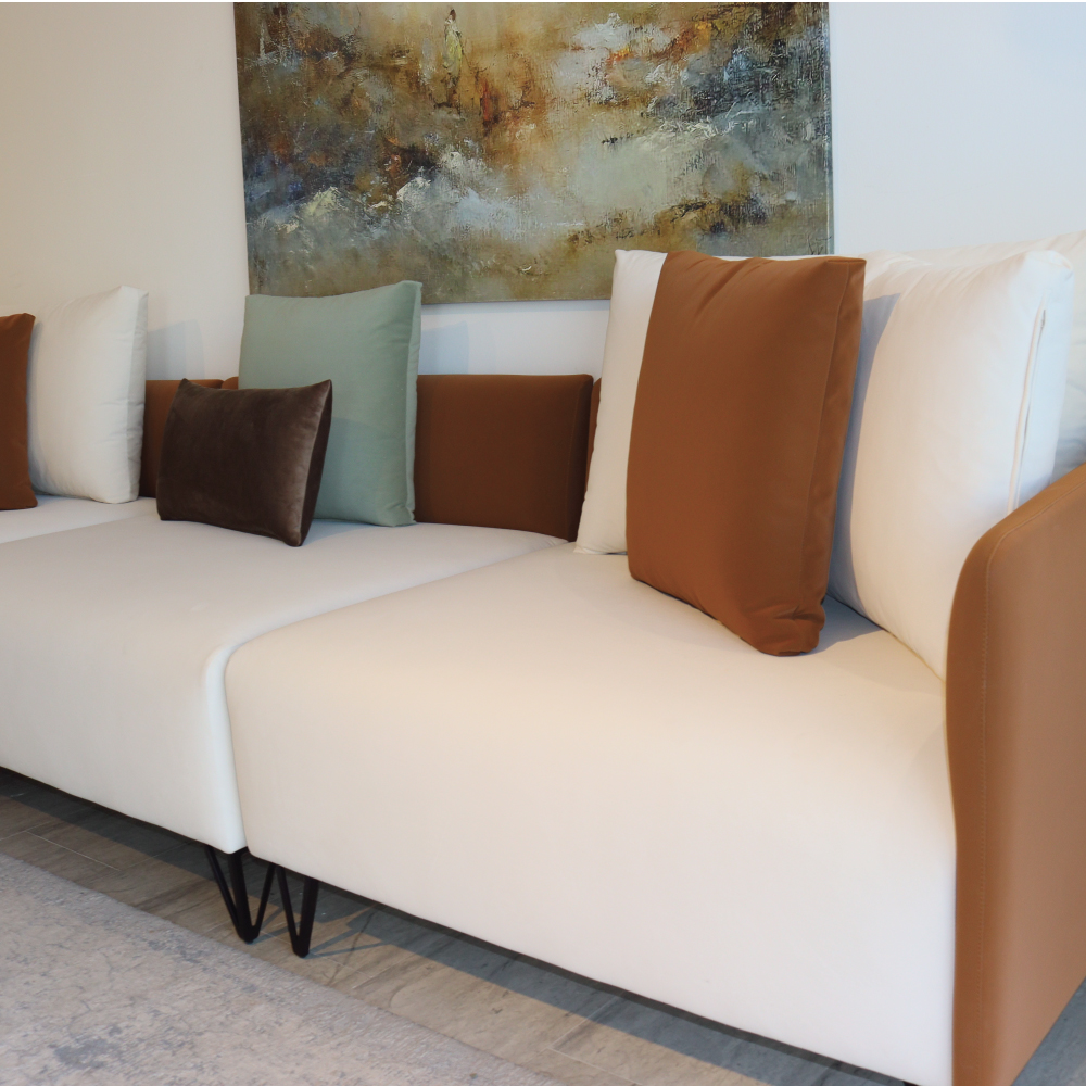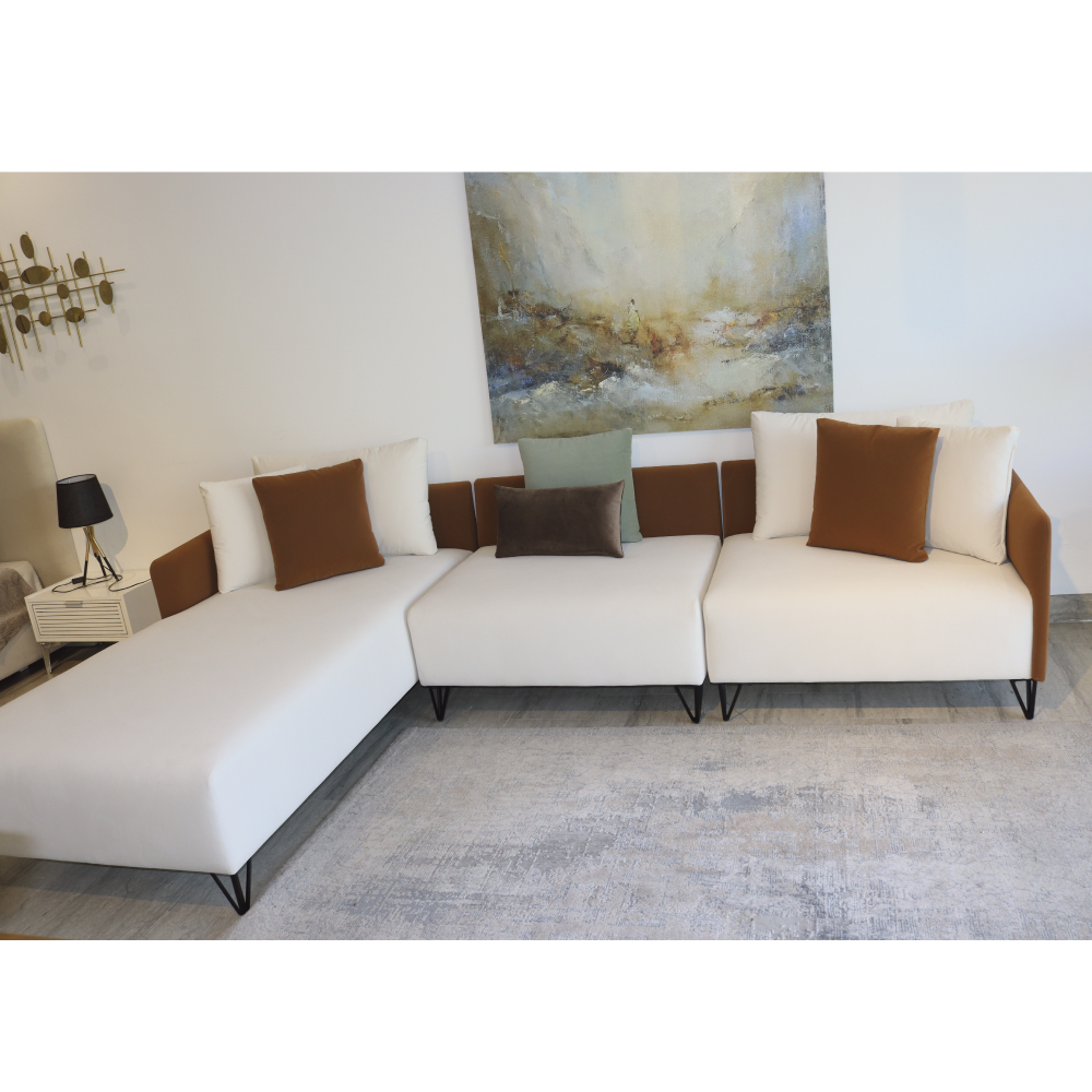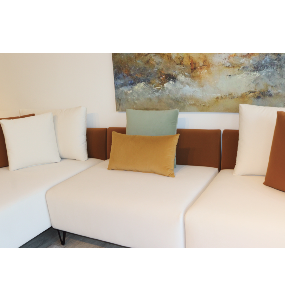 Séjour area 3m sur 2m tissu velour et les accedoire en similicuir socle en métal